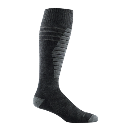 8007 men's edge over-the-calf ski sock in charcoal with light gray toe/heel accents and shin striping