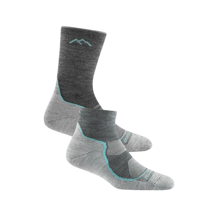 1967 women's light hiker micro crew hiking socks in color slate gray with light gray bottom and light blue stripe