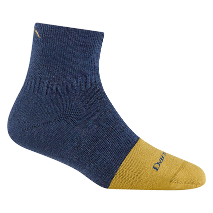 2016 women's steely quarter work sock in color indigo with yellow toe accent and small mountain detail on ankle